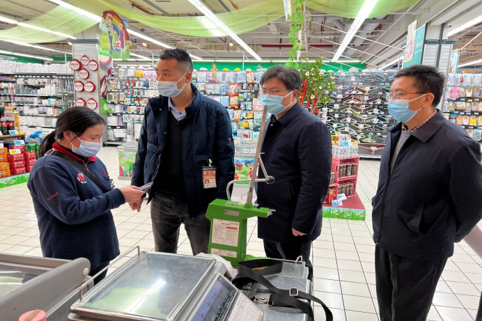 3月23日,市商务粮食局党组书记、局长周和平深入主城区督导商超、农贸市场疫情防控工作。副局长郑建华和督导组相关同志陪同。