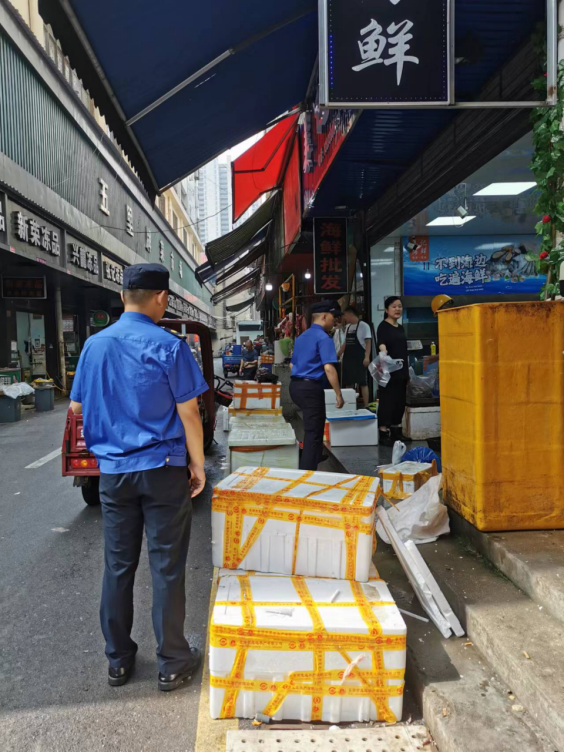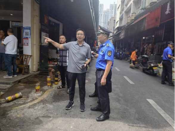 郑建华副局长一行紧抓市场内环境卫生、市场外占道经营等薄弱环节仔细督查,指出市场周边卫生保洁、占道经营、车辆停放、乱搭乱盖都是要重点整治的问题,商务部门要坚持问题导向,强化上下协同,推动农贸市场文明创建工作制度化、常态化、规范化,城管部门要加强对市场周边占道经营、保洁不及时问题的现场督导,高山坡社区和楼区市场服务中心要严格落实市场主体责任,加强日常环境秩序维护,提升农贸市场管理水平,确保“脏乱差”问题整改到位。