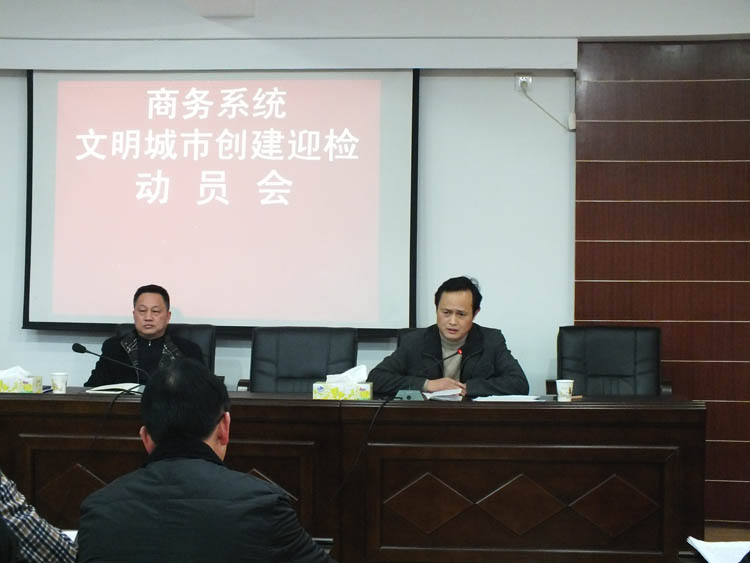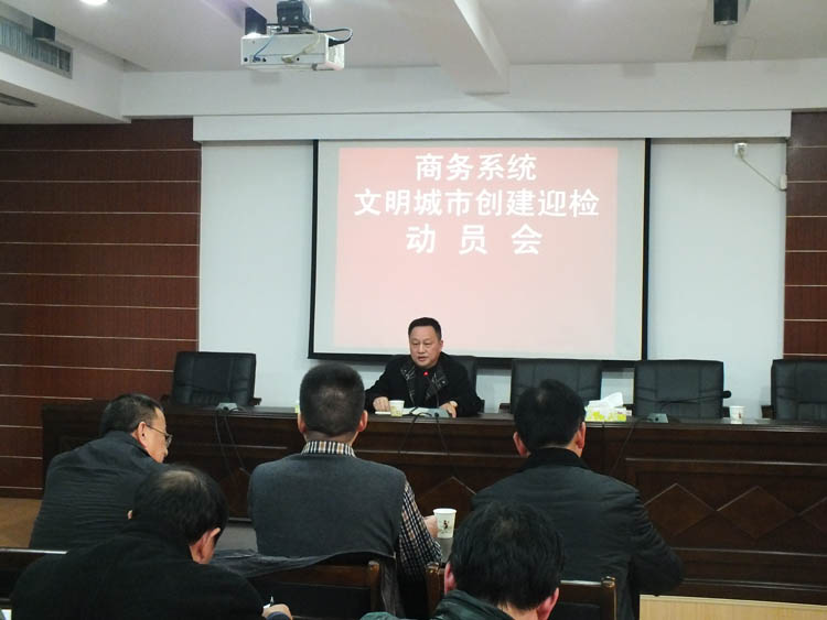 2014年12月18日下午,商务系统召开文明创建再动员大会,会议由局党组书记、局长禹辉主持,机关全体干部职工、市市场处负责人和局属农贸市场负责人120余人次参加了此次会议。