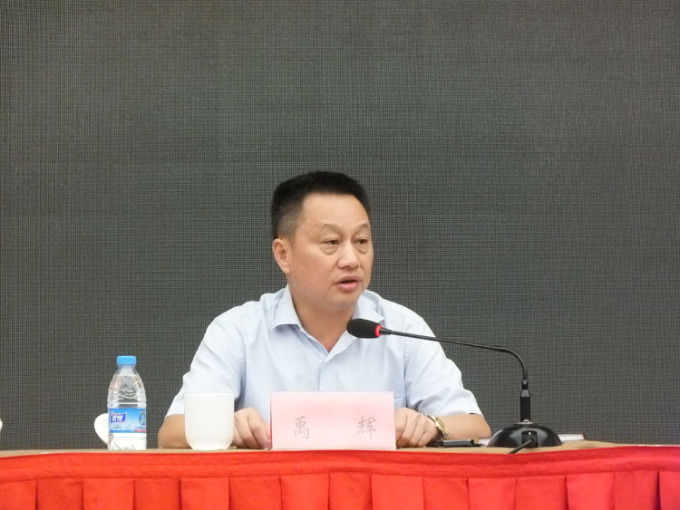 市商务粮食局党组书记、局长禹辉在会上发言