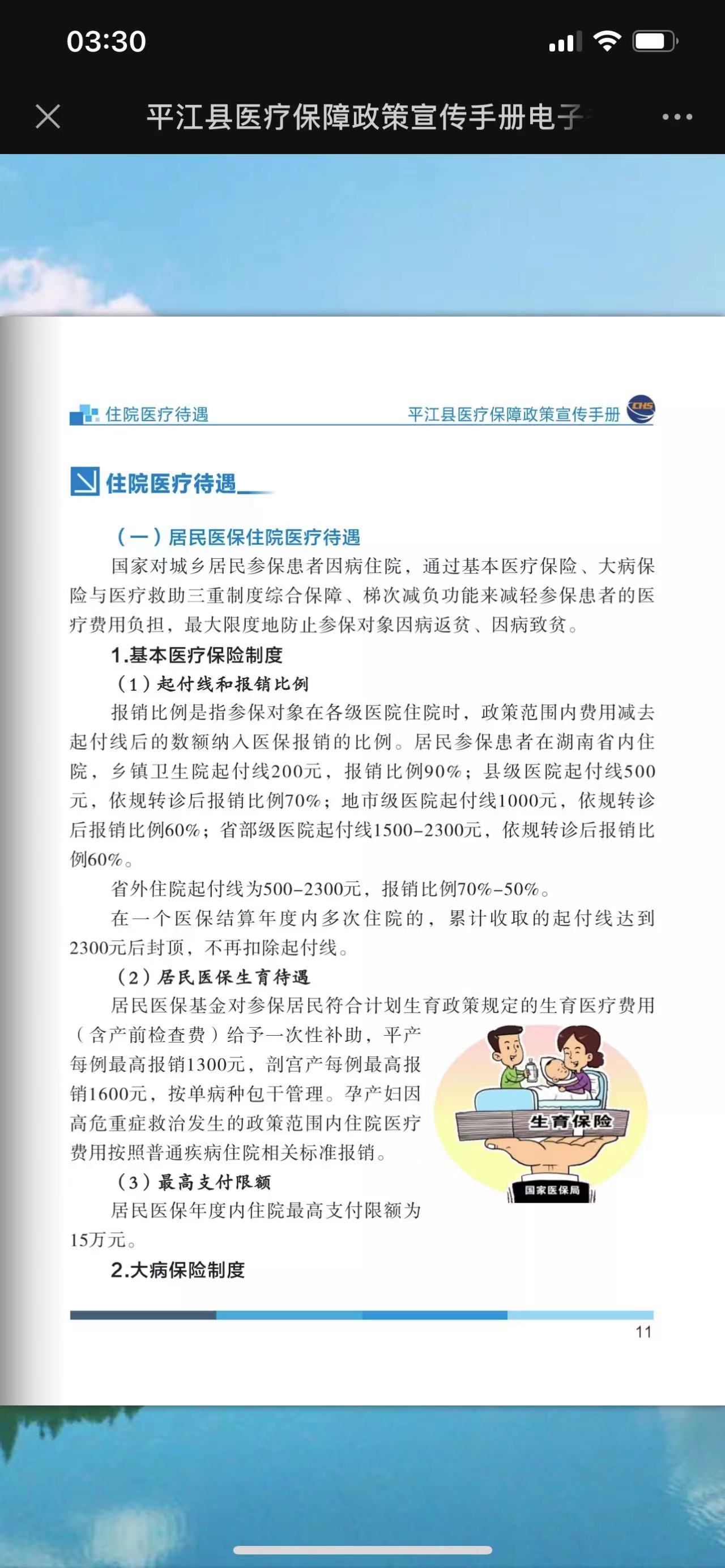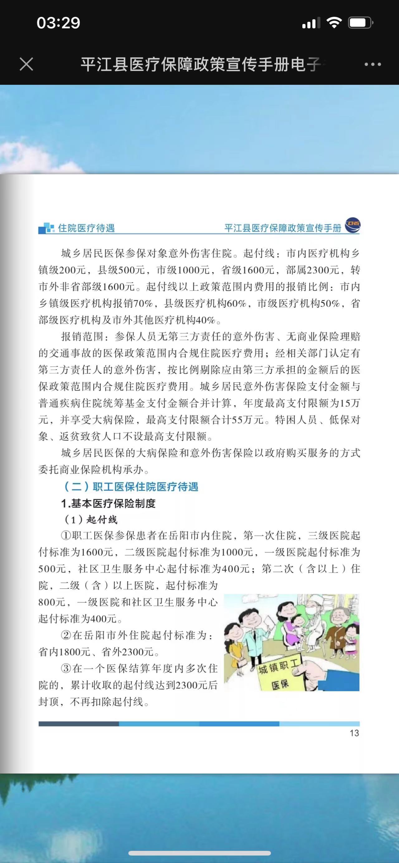 后来我查询了《平江县医疗保障政策宣传手册》,才得知职工医保在岳阳市外住院起付线为1800元,但是我同时还查询到了,居民医保在省内住院,社区医院起付线都是200元。