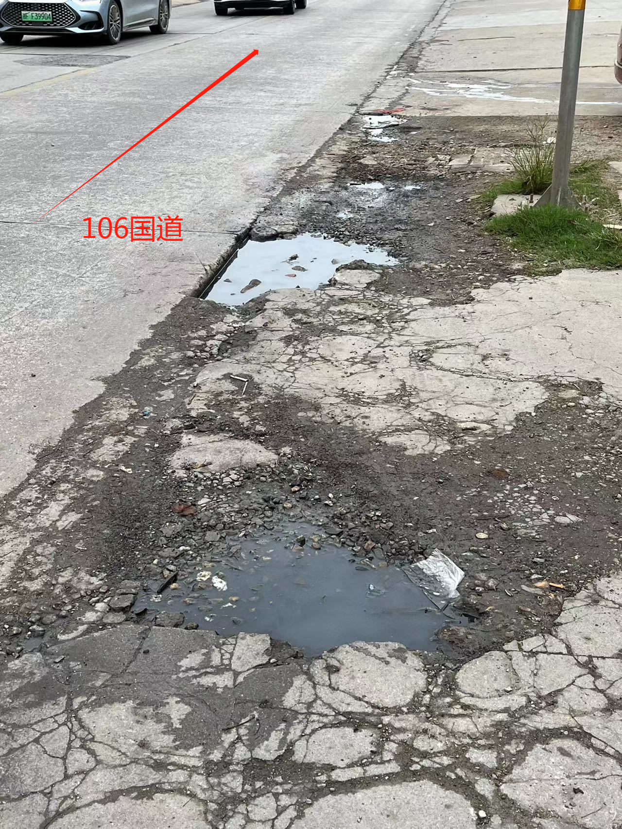 湖南省平江县梅仙镇团山村,村委会对面,炫彩文具店前面106国道路基损坏!原路基完好,后水利局埋自来水管,填补好后,后来慢慢被车压坏! 附件1:b936622661eed247205ef4e85443c1a.png 附件2:a89b29e55262892eb1b934d38790b4f.png |